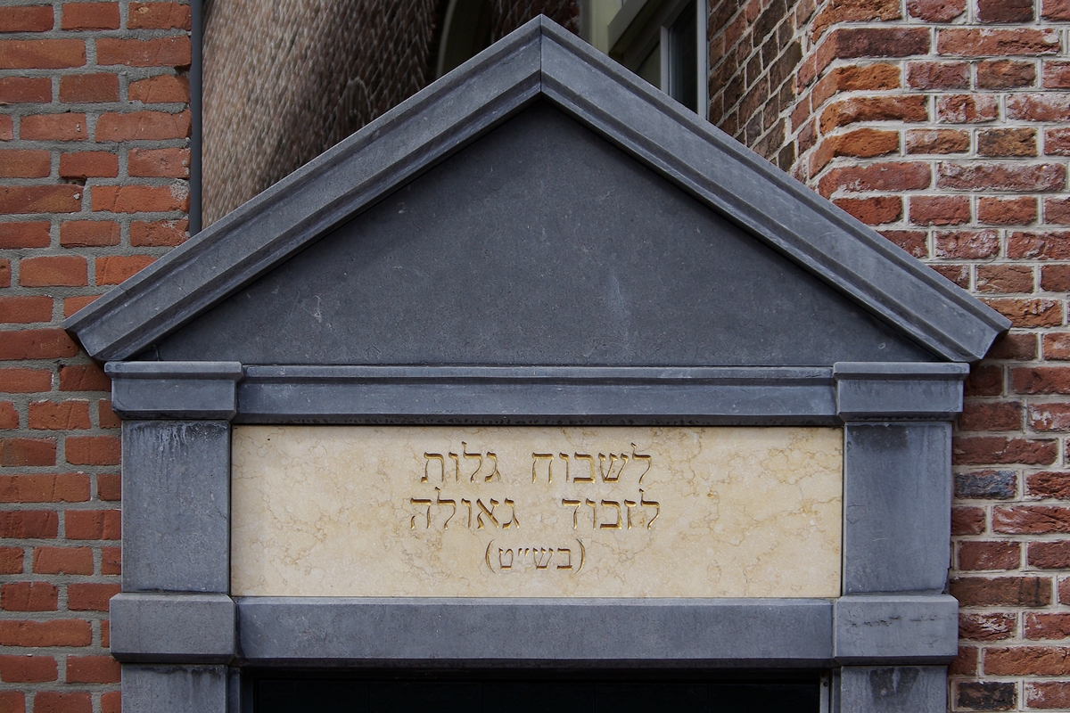 Boven de hoofdingang is tijdens de restauratie een marmeren plaat uit de bergen van Juda geplaatst met de Hebreeuwse tekst; “Vergeten leidt tot ballingschap, gedenken tot verlossing”.