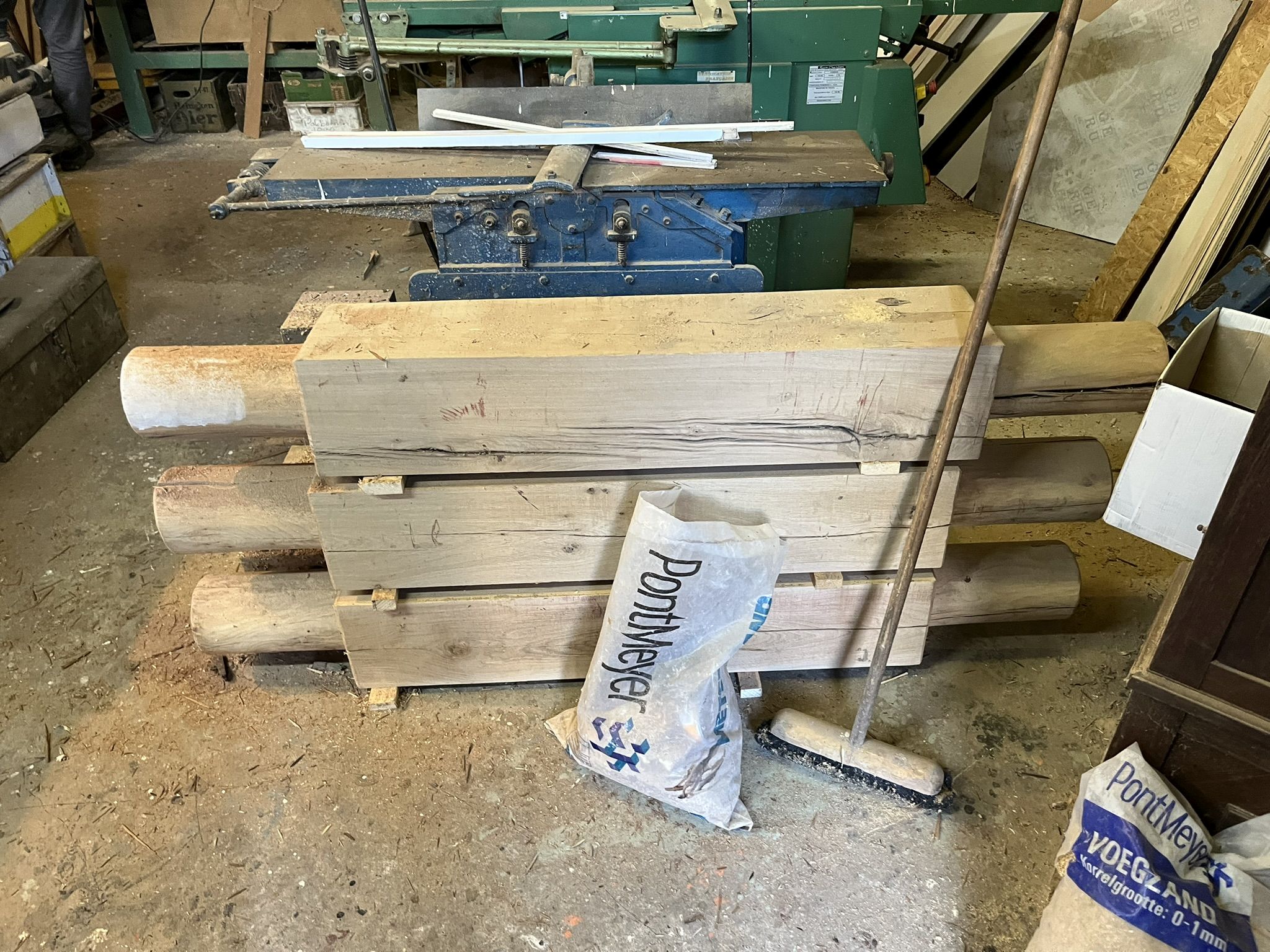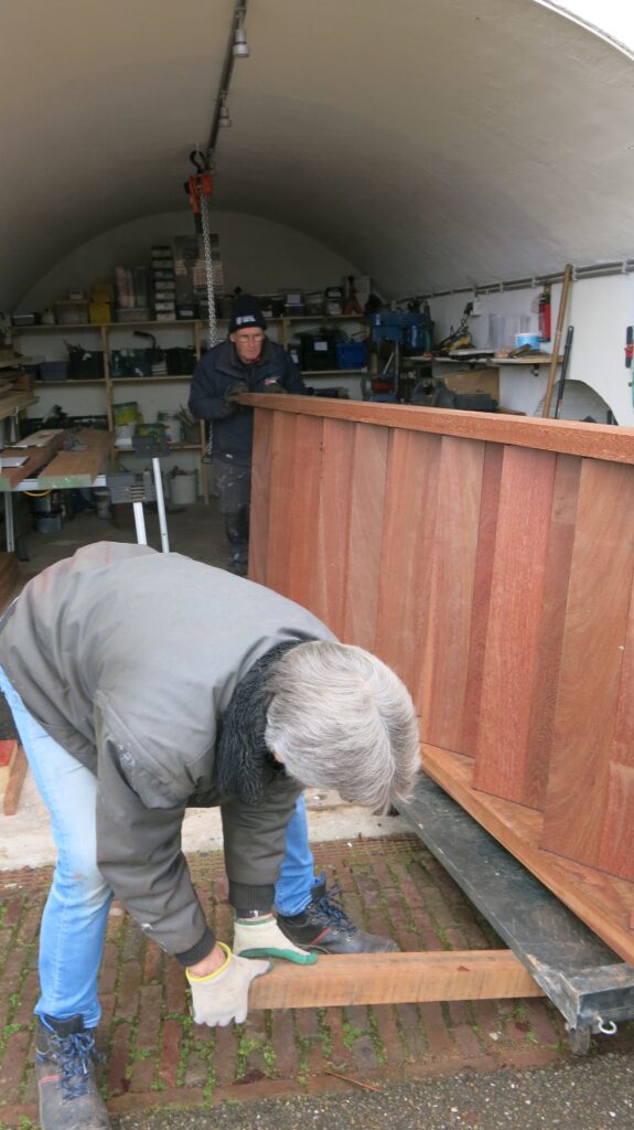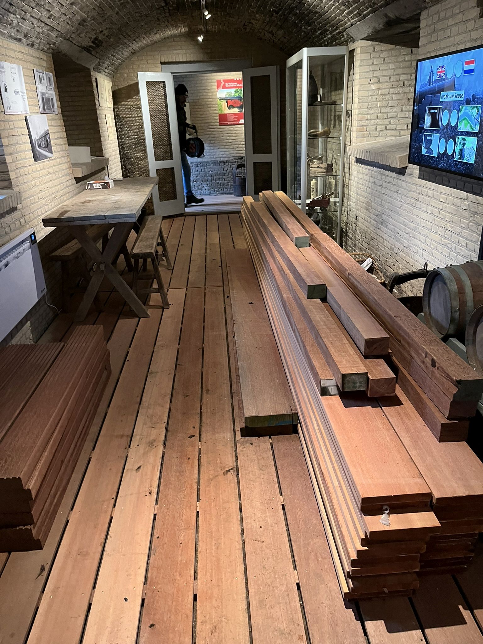 In december hebben we hout besteld, Azobe en Kapur, voor een nieuw project op Bastion III. Het ligt tijdelijk in het kruitmagazijn.